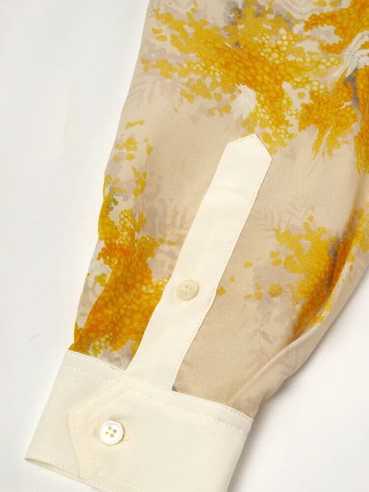 [EWQ] 美しいプリントシャツトップスルーズ長袖シングルブレストイエローブラウス 2024 春夏 U8304 ロング スプリング 春物 サマー 夏物 シルク