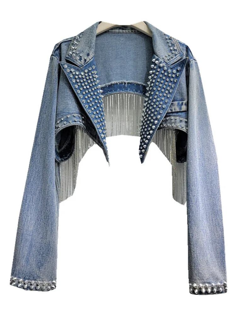[EWQ] ストリート Y2k ネイル ダイヤモンド ビーズ テル デニム ジャケット ショート スタイル クール ガール アウター 2024 春秋 16U8769 スプリング 春物 オータム 秋物