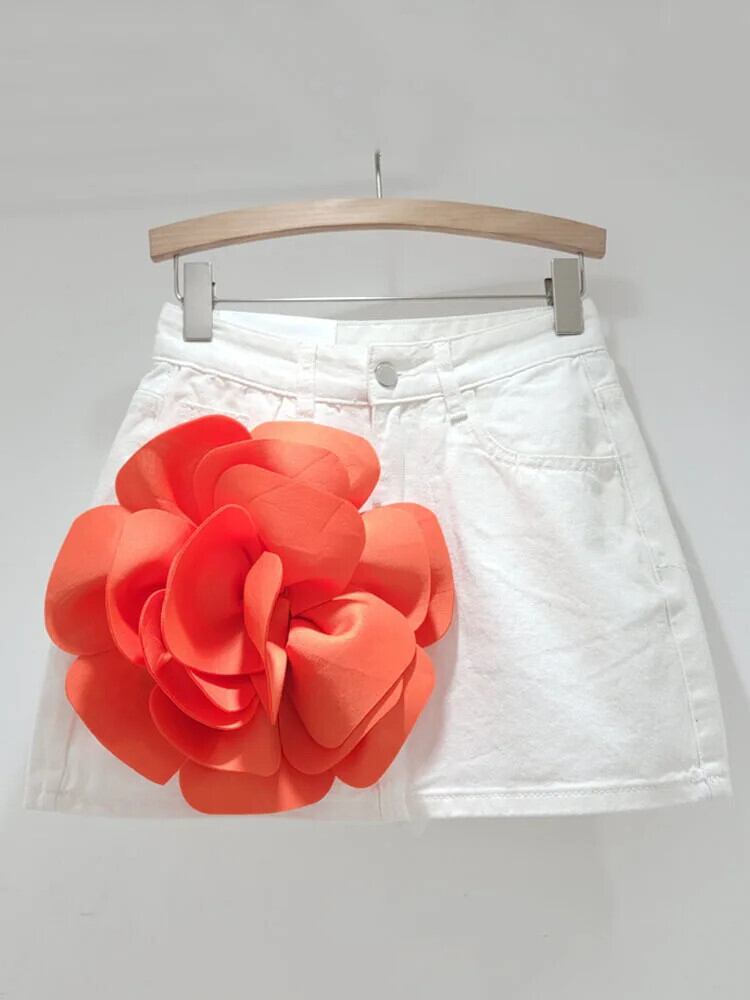[EWQ] ストリートフラワーウエストデニムショートスカート A ライン Y2k クールガール尻ラップヒップスカート 2024 夏 16U8689 サマー 夏物 Aライン フラワーデザイン