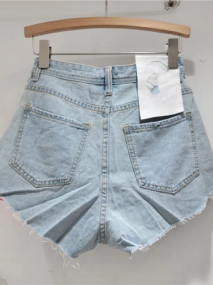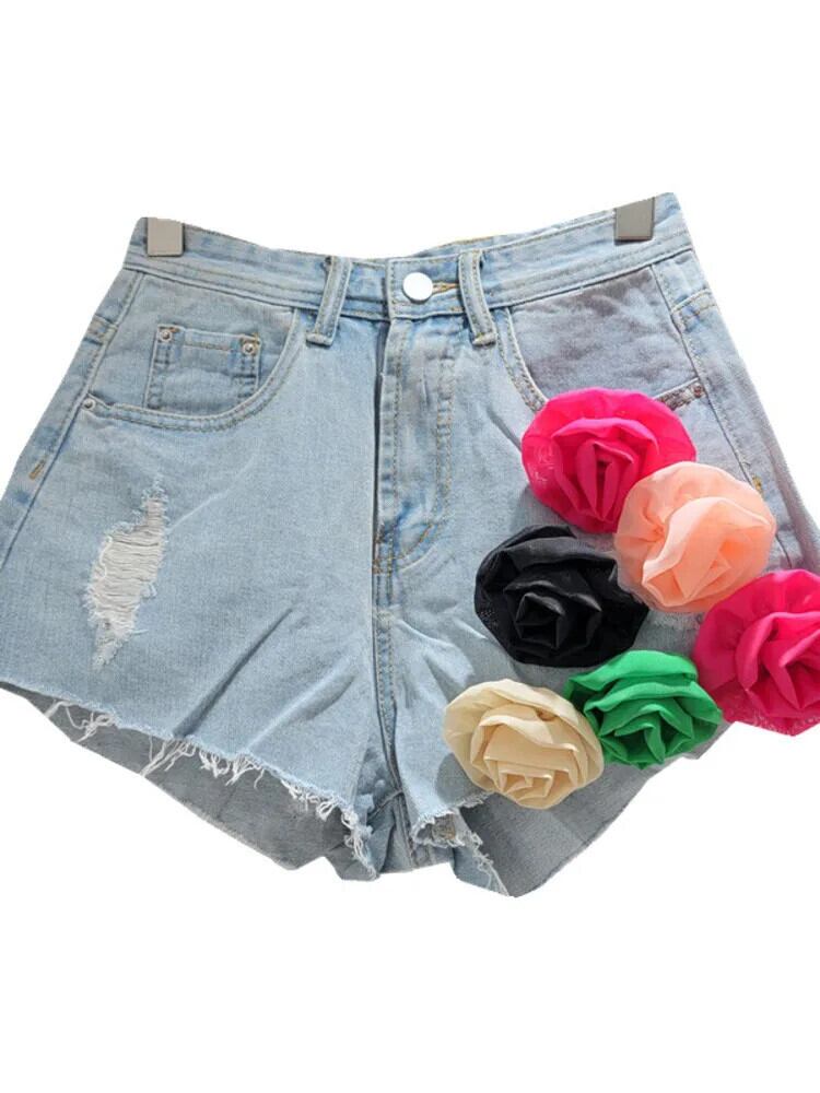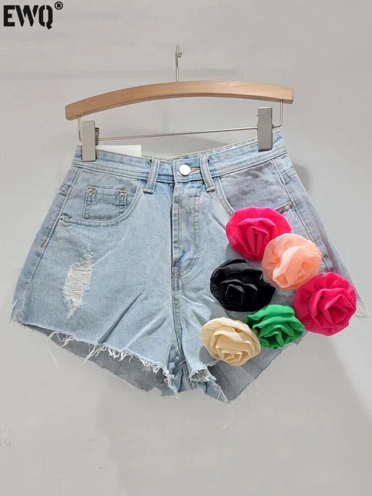 [EWQ] ヨーロピアンデニムショーツ レディース ウエスト3Dフラワー ストレートチューブ ワイドレッグショートパンツ 2024春夏 16U8807 スプリング 春物 サマー 夏物 ブルマー ワイドパンツ フラワーデザイン