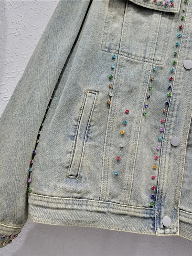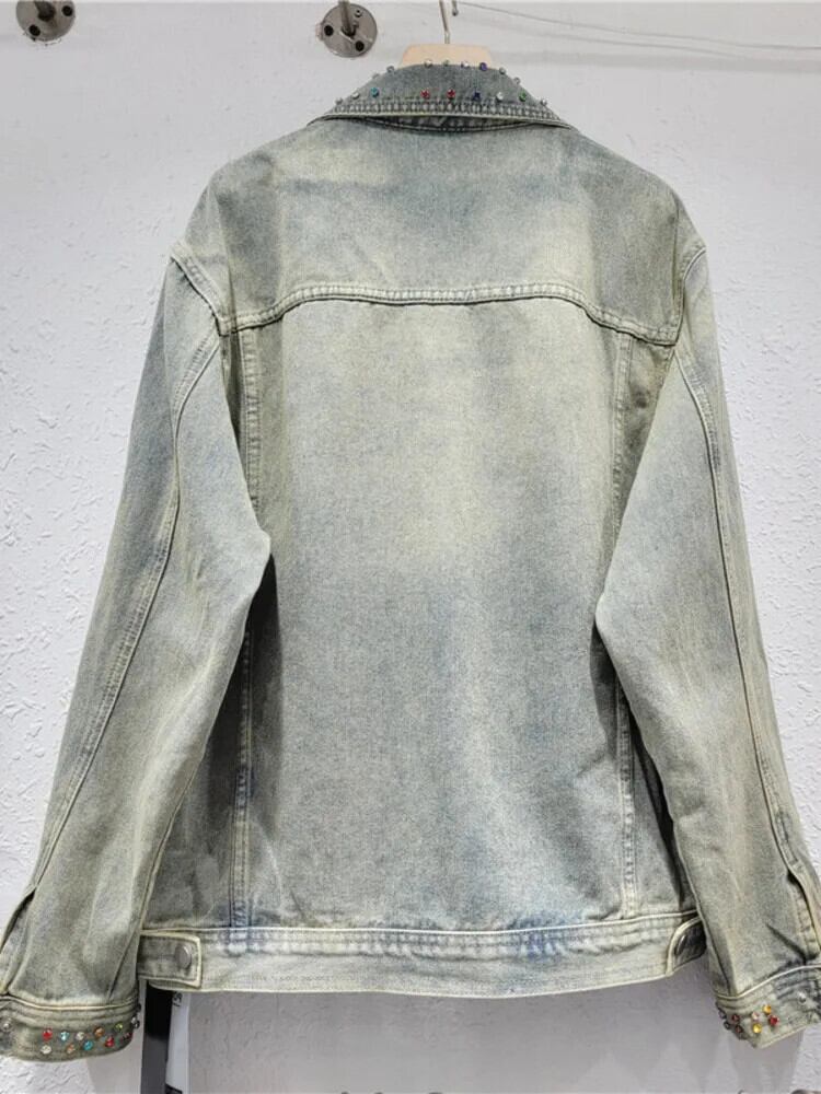 [EWQ] ヨーロピアンネイル ダイヤモンド シングルブレスト ラペル デニム コート レディース ルーズ 万能 ジャケット トップス 2024 春秋 16U8795 スプリング 春物 オータム 秋物