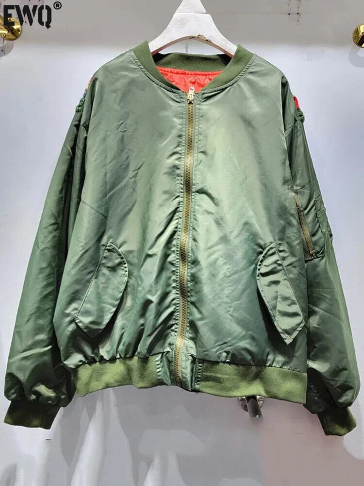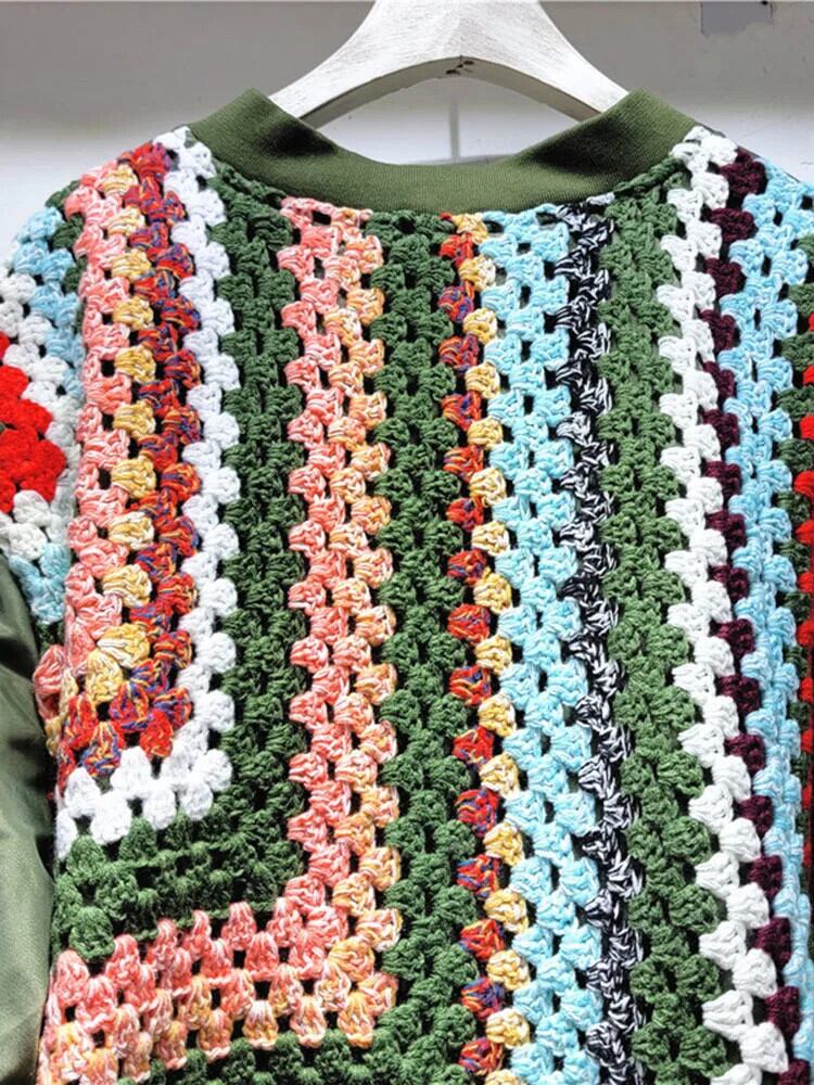 [EWQ] パッチワーク ニットフック セーター スプライス ルーズ ベースボール コート レディース アウター 2024 春秋 6U8836 スプリング 春物 オータム 秋物