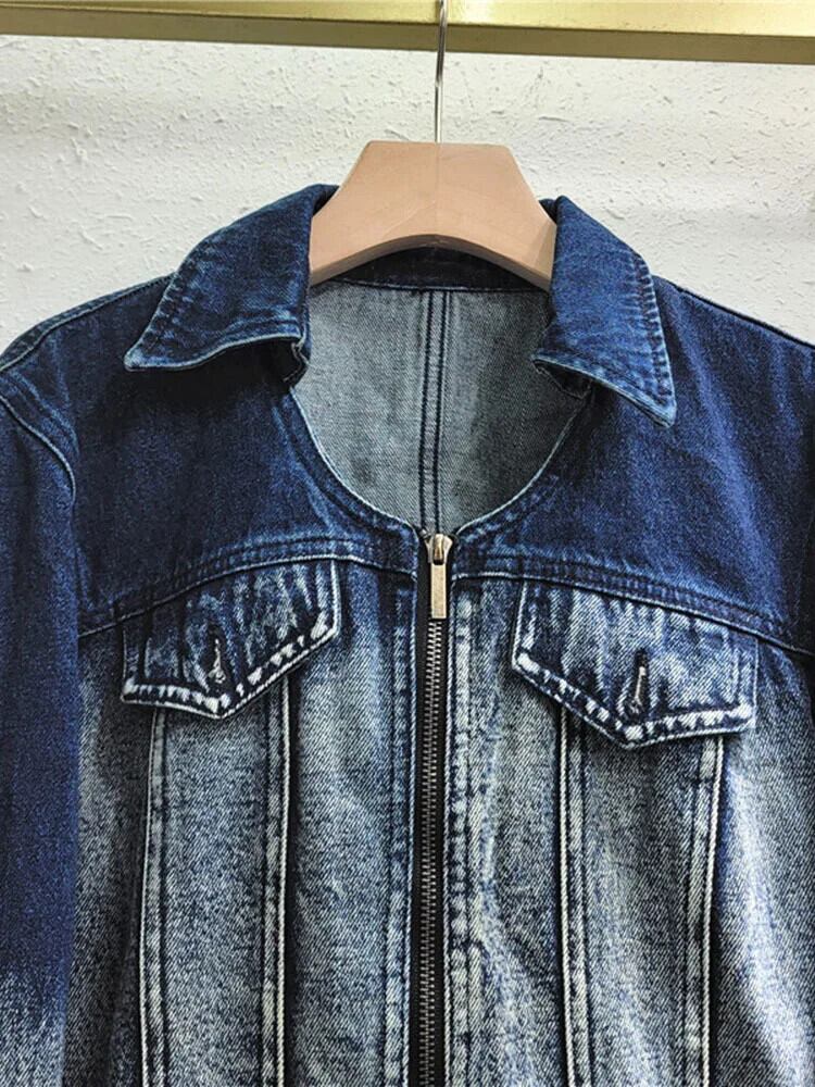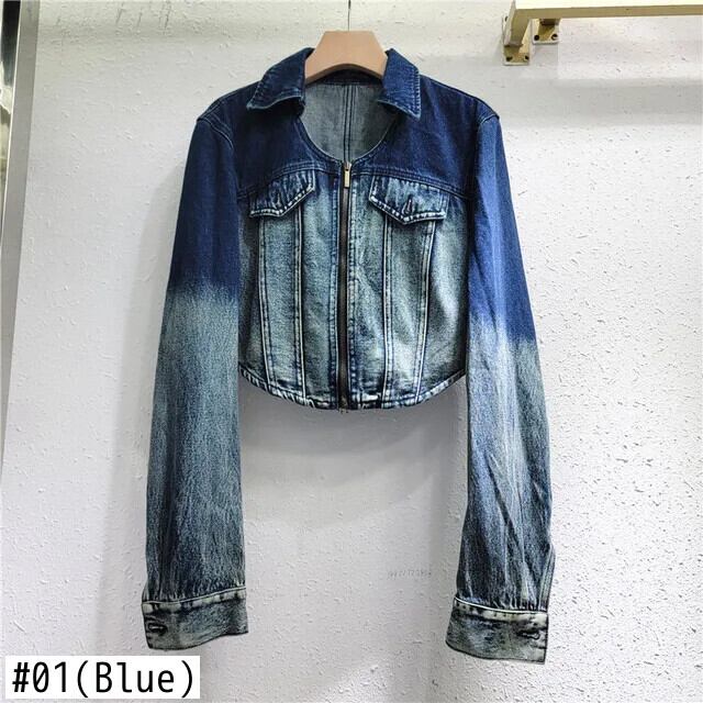 [EWQ] ストリート美しいブルージッパークールガールポケットジャケットジッパーコントラストカラーデニムコート 2024 春秋 16U8837 スプリング 春物 オータム 秋物