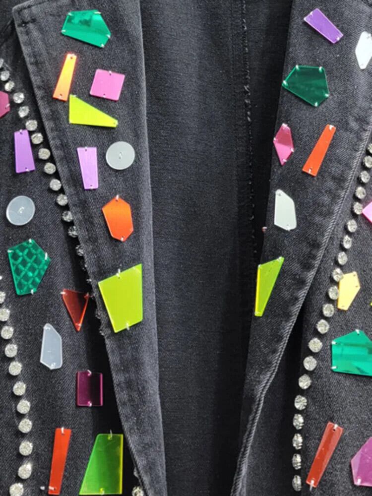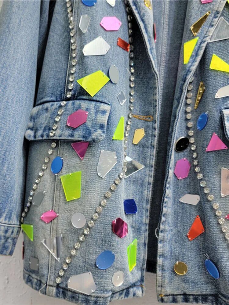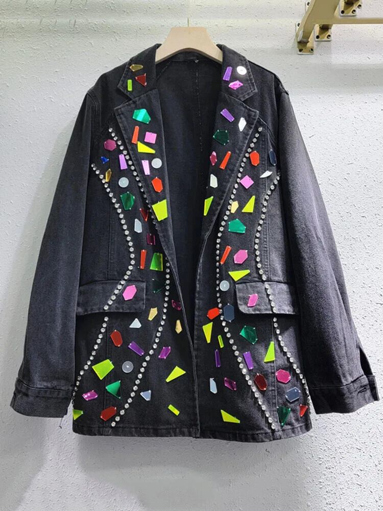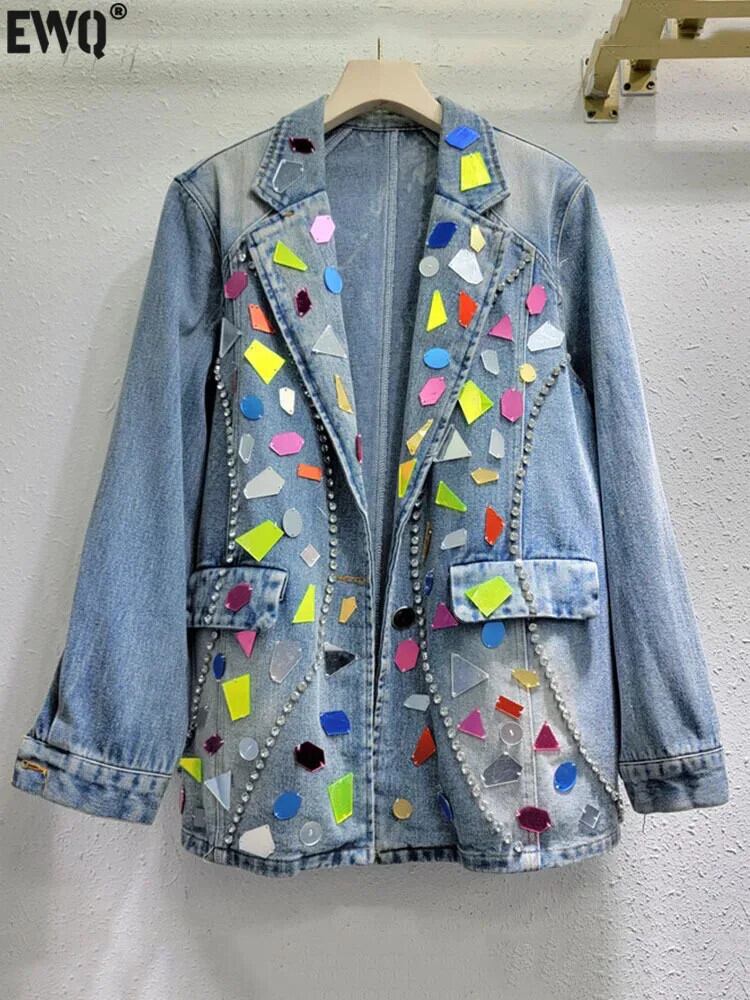 [EWQ] カラフルハンドメイドウォッシュダイヤモンド象嵌デニムジャケット可能ルーズアウターコート 2024 春秋 6U8767 スプリング 春物 オータム 秋物