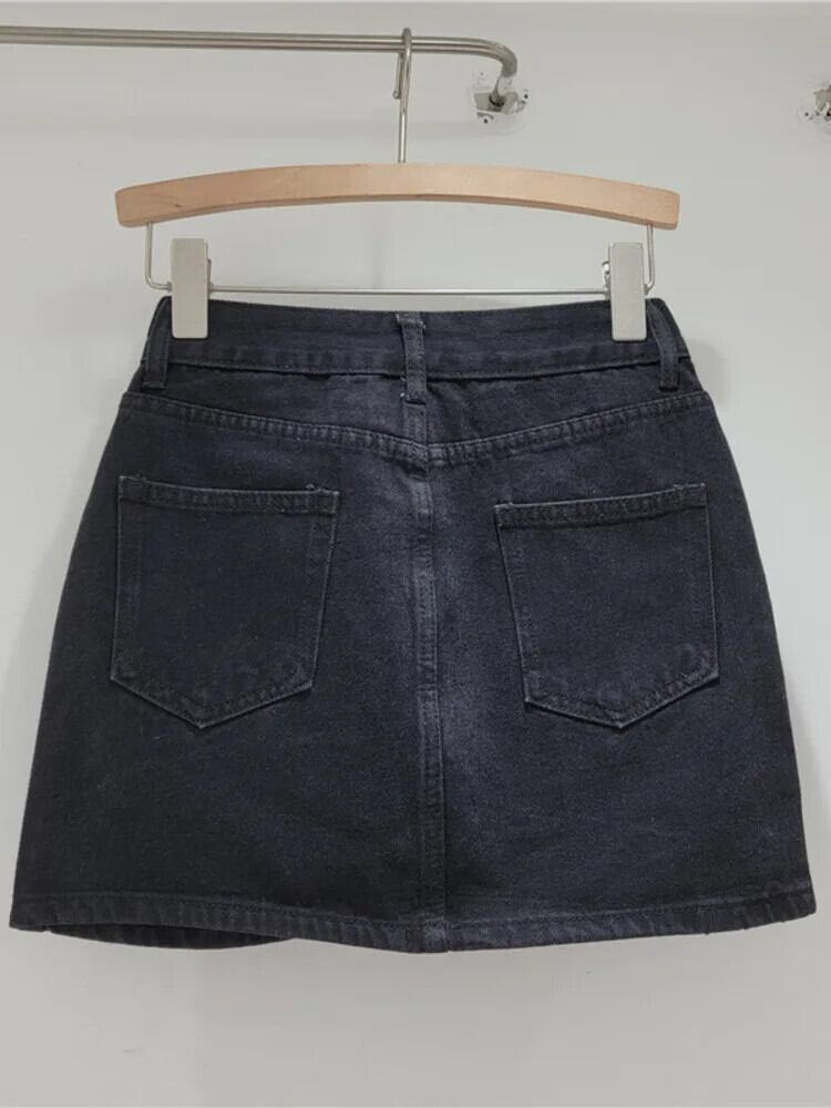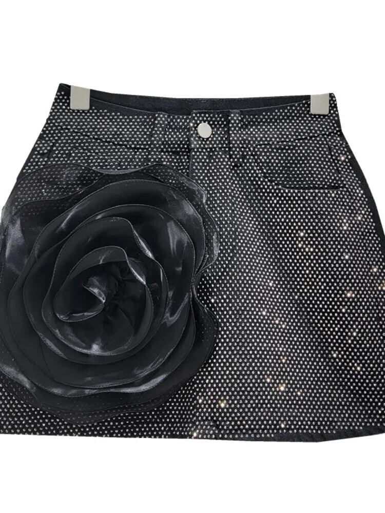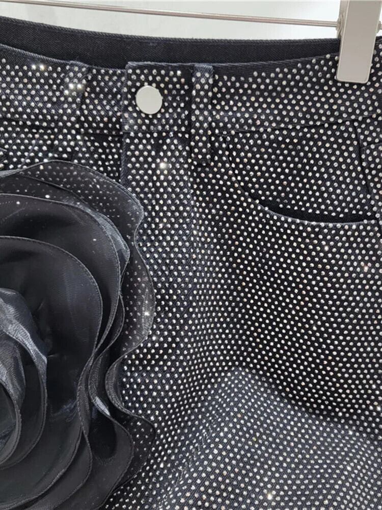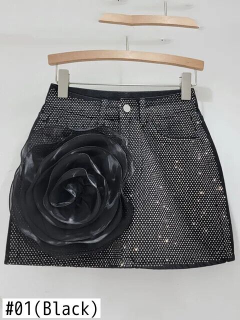 [EWQ] Y2k 立体フラワーダイヤモンドセクシー A ラインポケットブラックホワイトデニムスカート 2024 夏 16U8841 サマー 夏物 Aライン フラワーデザイン