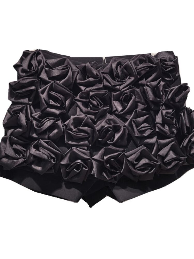 [EWQ] レディース 高級立体ローズフラワー装飾ミニショーツ ブラック レッド ショートパンツ 2024春夏 U8848 スプリング 春物 サマー 夏物 ブルマー フラワーデザイン