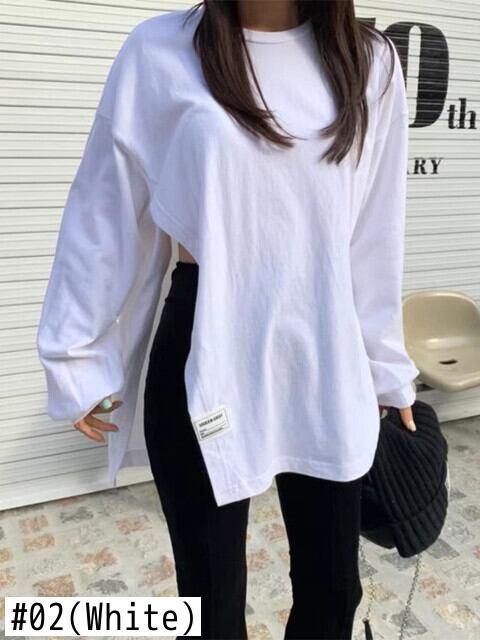 [EWQ] シックレター パッチワーク サイドスリット ルーズ Tシャツ オールマッチ 長袖 トップス レディース 2024春夏 952 ロング スプリング 春物 サマー 夏物
