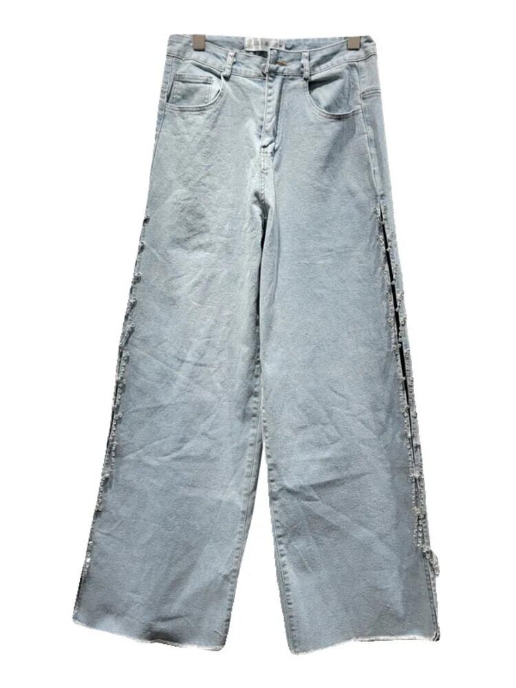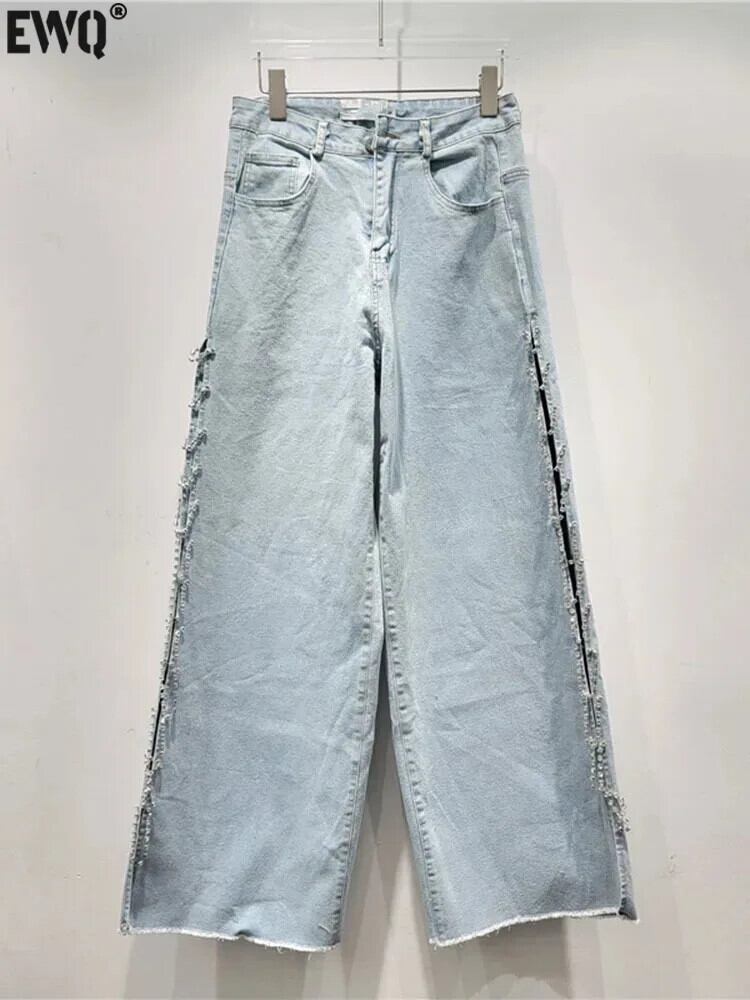 [EWQ] ルーズウエスト Y2k デニム ロングパンツ サイドダイヤモンド象嵌 レディース スプライス パンツ 2024 春夏 6U8869 スプリング 春物 サマー 夏物