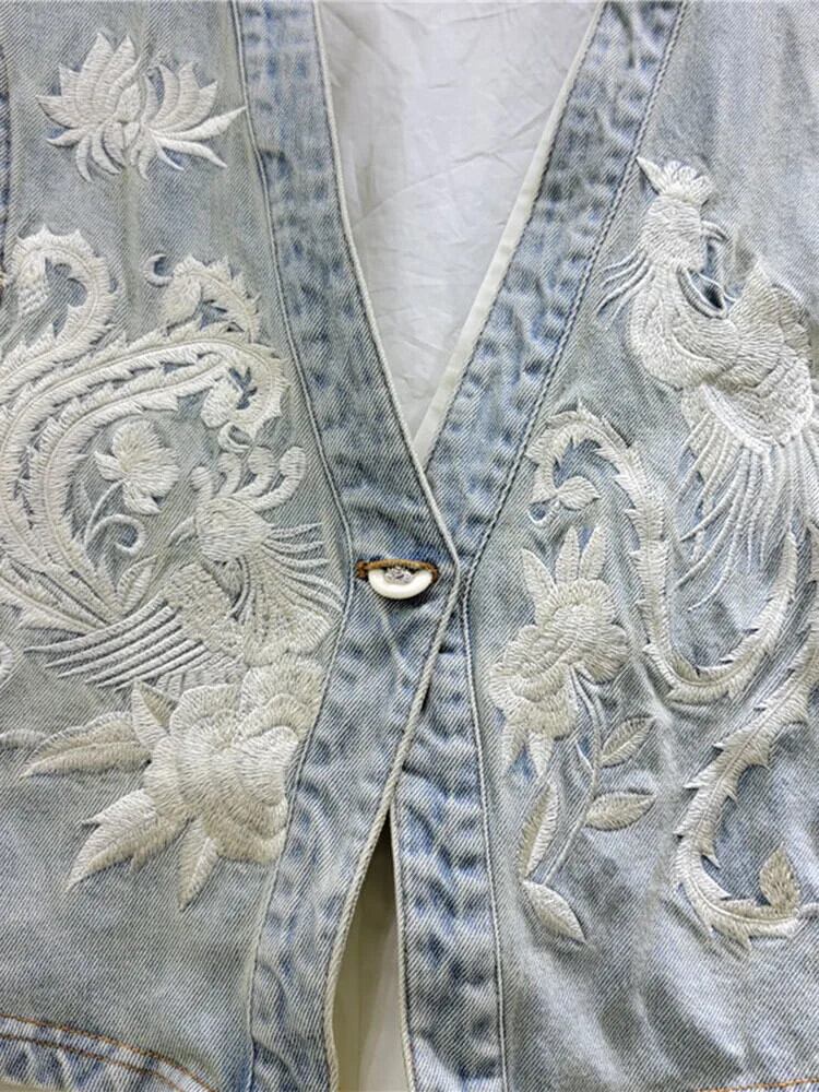 [EWQ] オーバーサイズ V ネックコート トップ 1 つボタン刺繍ルーズ ノースリーブ デニム ベスト ジャケット レディース 2024 春夏 16U8871 スプリング 春物 サマー 夏物 Vネック