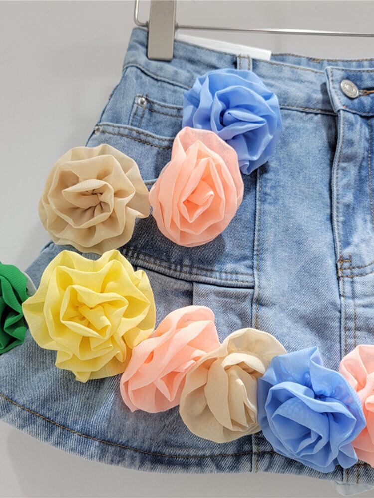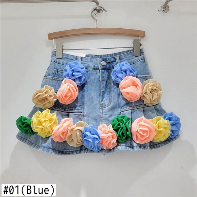 [EWQ] 甘いカラフル 3D 花裾オールマッチショートパンツデニムミニスカートレディース 2024 春夏 16U8845 大人ガーリー スウィート キュート カジュアル スプリング 春物 サマー 夏物 フラワーデザイン