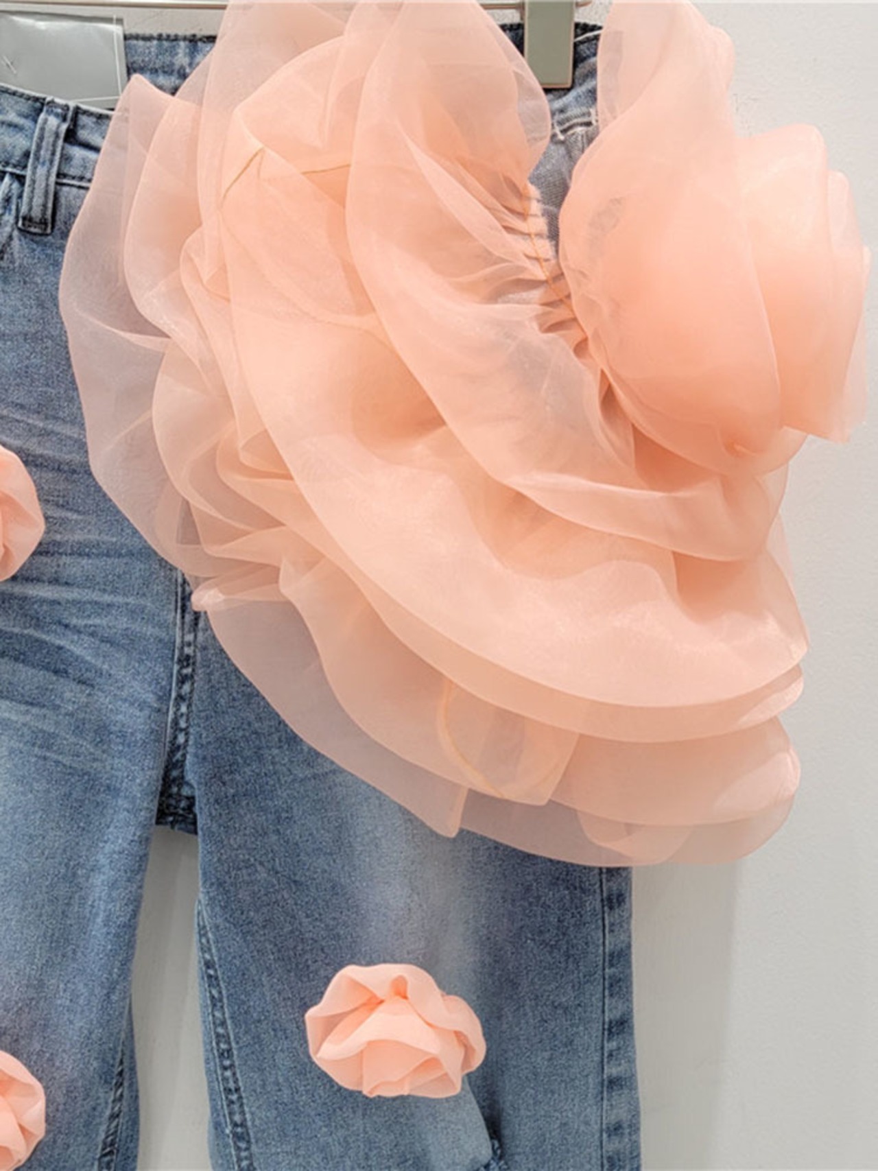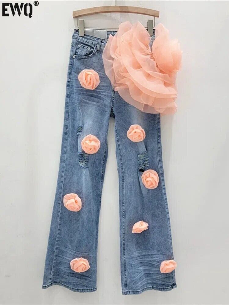 [EWQ] ヨーロッパ 3D 花柄高級ウエストデニムズボンストレートワイドレッグパンツジーンズ 2024 春夏 U8730 スプリング 春物 サマー 夏物 ワイドパンツ フラワーデザイン ヨーロピアン