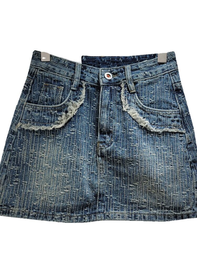 [EWQ] ストリート テクスチャー テル ウエスト Aライン ラップヒップ ショート デニム スカート レディース 2024 春夏 16U8865 レッド スプリング 春物 サマー 夏物