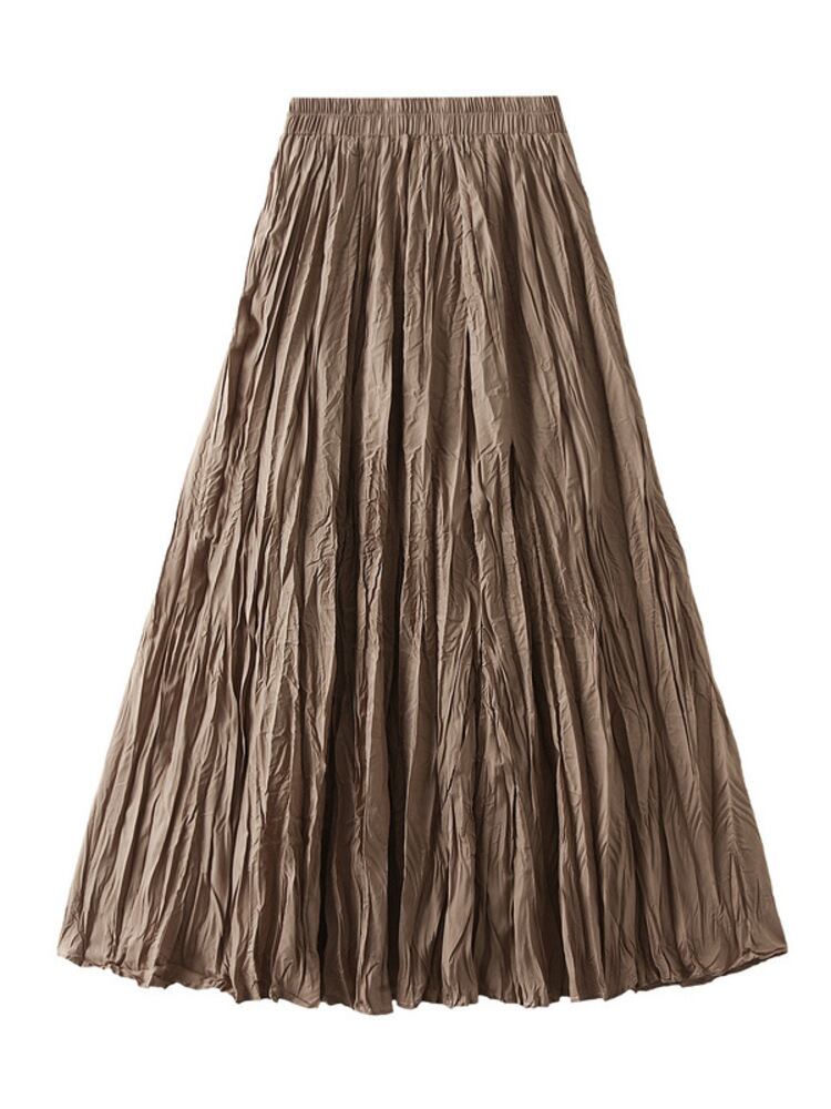 [EWQ] 高級マルチソリッドカラープリーツスカートレディース大きい裾シンプルひだAラインスカート2024春秋23A7004 スプリング 春物 オータム 秋物