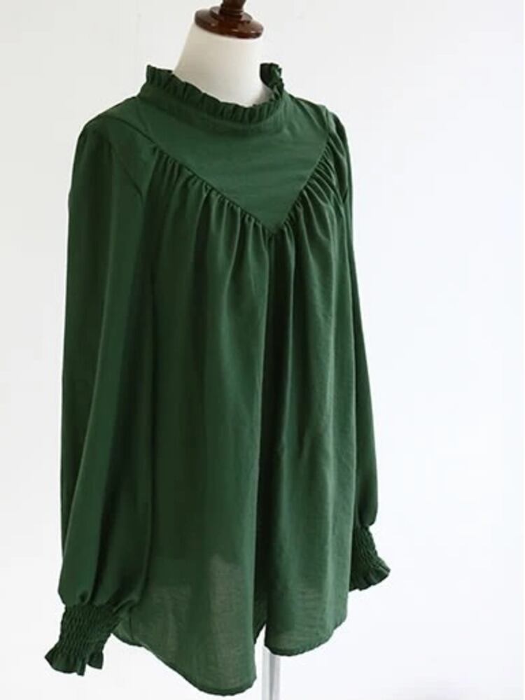 [EWQ] シンプル ルーズ コットン リネン プリント ラウンドネック 長袖 シャツ レディース ブラウス トップス 2024 春夏 16U8600 ロング スプリング 春物 サマー 夏物 Oネック