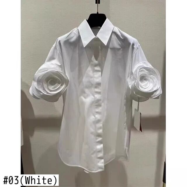 EWQ ソリッドカラー立体フラワーシングルブレストラペルシックシャツ甘いスタイルカーディガンブラウス 27SN5724 大人ガーリー スウィート キュート カジュアル フラワーデザイン