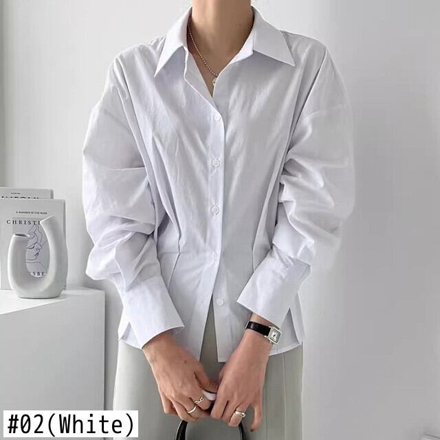 [EWQ] プリーツ パッチワーク 白シャツ レディース ゆったり 長袖 シングルブレスト 秋冬 16U4371 ロング ホワイト オータム 秋物 ウィンター 冬物