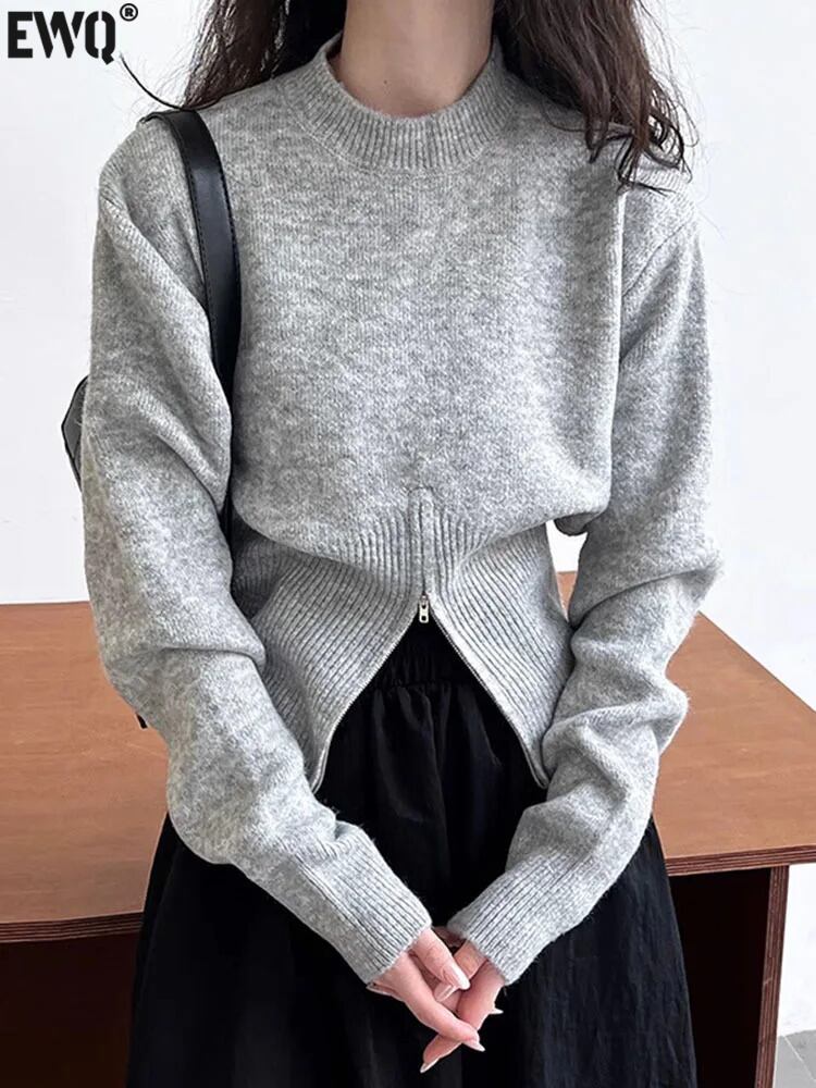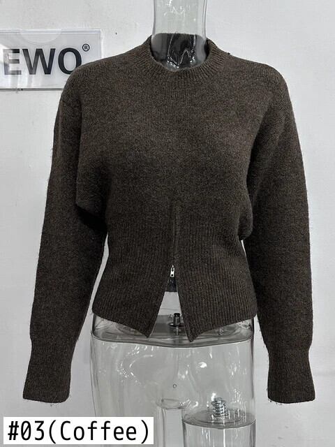 [EWQ] O ネックジッパー秋冬シンプル長袖ニットカーディガンセーターニットベーシックプルオーバー 16U5720 ロング オータム 秋物 ウィンター 冬物 Oネック