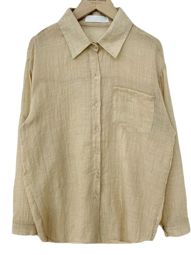 [EWQ] リネン夏シングルブレストルーズフィット長袖ポケットスプライシング潮薄いトップ 6U395 ロング サマー 夏物
