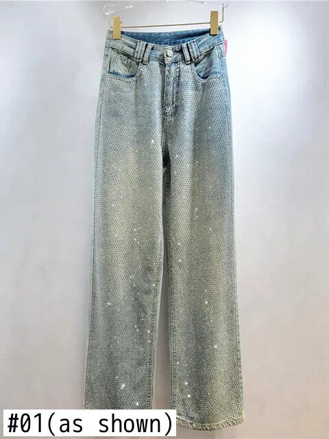 [EWQ] ラグジュアリーダイヤモンド ロングデニムパンツ レディース ウエストゆったり ワイドレッグパンツ 2024春夏 16U8824 スプリング 春物 サマー 夏物 ワイドパンツ