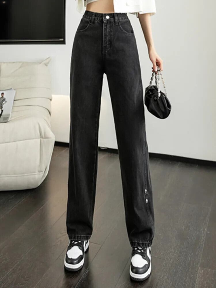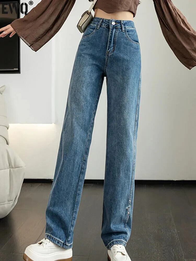 [EWQ] ストリートストレートワイドレッグデニムロングパンツウエストズボン 2024 春秋 23A7738 スプリング 春物 オータム 秋物 ワイドパンツ