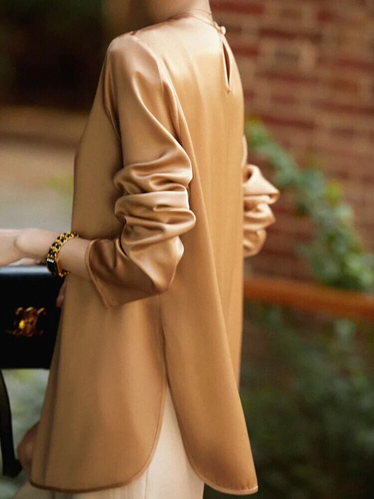 [EWQ] オールマッチ シンプル ラウンドネック 長袖 Tシャツ 無地 ブラウス レディース トップス 2024春夏 16U8309 ロング スプリング 春物 サマー 夏物 Oネック ソリッドカラー