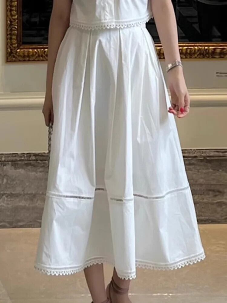 [EWQ]シックホワイトブラックラペル半袖シャツウエストビッグスイングスカート婦人2024春夏16U8193 ショート ハーフスリーブ スプリング 春物 サマー 夏物