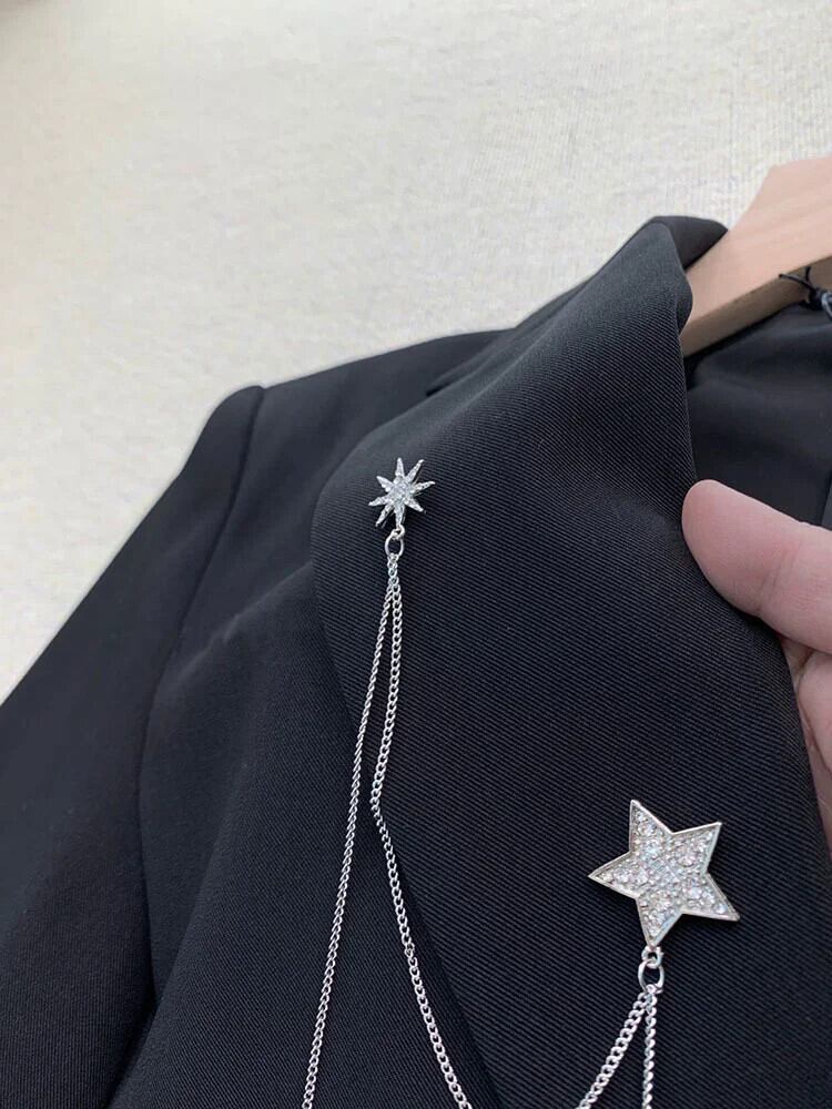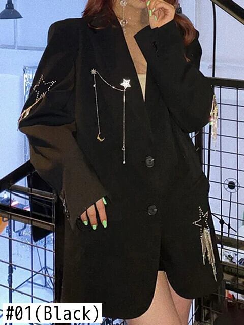 [EWQ] 気質ダイヤモンドスパンコールスターテルスプライスブレザージャケット長袖スーツコート 2024 春秋 ロング スプリング 春物 オータム 秋物