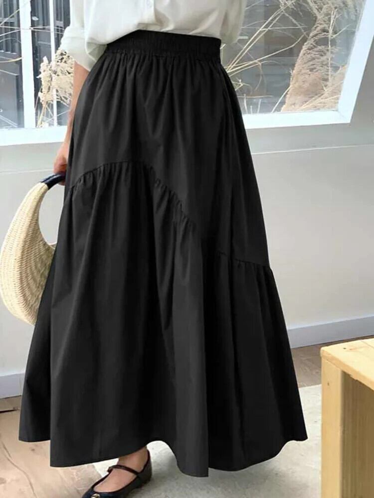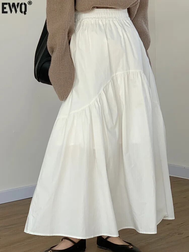 [EWQ] 万能ウェーブプリーツウエストソリッドカラーフィッシュテールスカート大スイングスカート 2024 春夏 6U8601 スプリング 春物 サマー 夏物