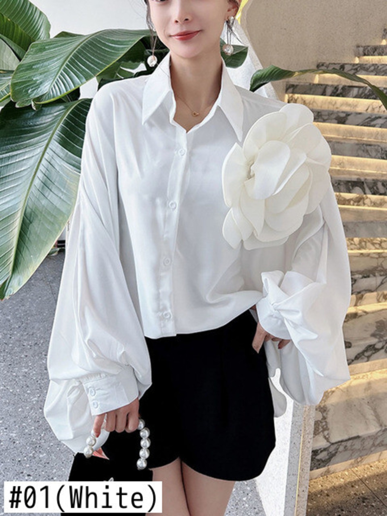 [EWQ] 無地 フラワートップ バットスリーブ ケープ 長袖 カーディガン シングルブレスト シャツ 2024春夏 16U8982 ロング スプリング 春物 サマー 夏物 ソリッドカラー フラワーデザイン