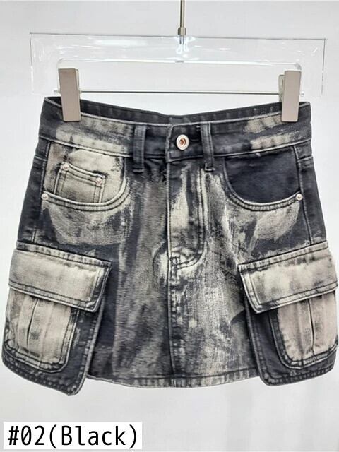 [EWQ] レディース スカート クール ガール カウボーイ Aライン ラップヒップ ハーフコントラストポケット ミニスカート 2024 春夏 16U8971 スプリング 春物 サマー 夏物