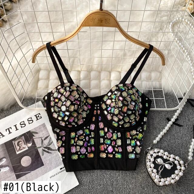 [EWQ] セクシー カラフル ダイヤモンド レディース 胸パッド ノースリーブ ベスト スリング トップ キャミソール タンク 2024 春夏 16U9010 スプリング 春物 サマー 夏物