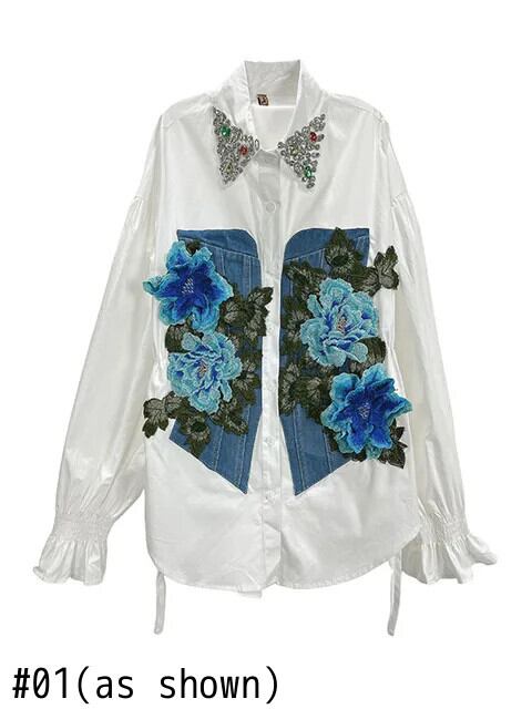 [EWQ] レディース 長袖 トップス ウエストフラワー刺繍 ダイヤモンドラペルシャツ 2024春夏 16U8978 ロング レッド スプリング 春物 サマー 夏物 フラワーデザイン