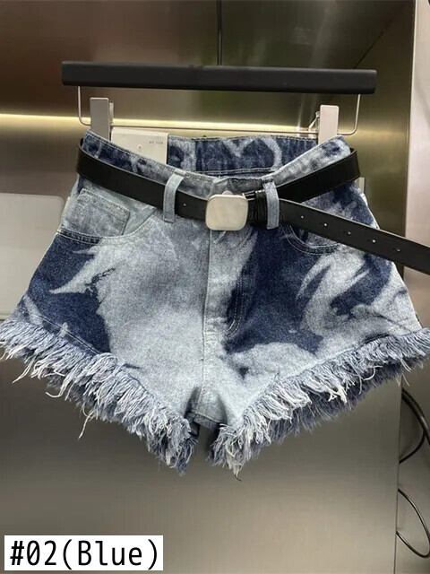 [EWQ] ストリートテルフリルフリンジデニムショートパンツ コントラストカラーベルトショーツ レディース 2024春夏 6U8995 スプリング 春物 サマー 夏物 ハーネス ブルマー
