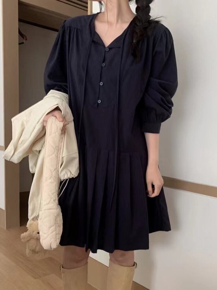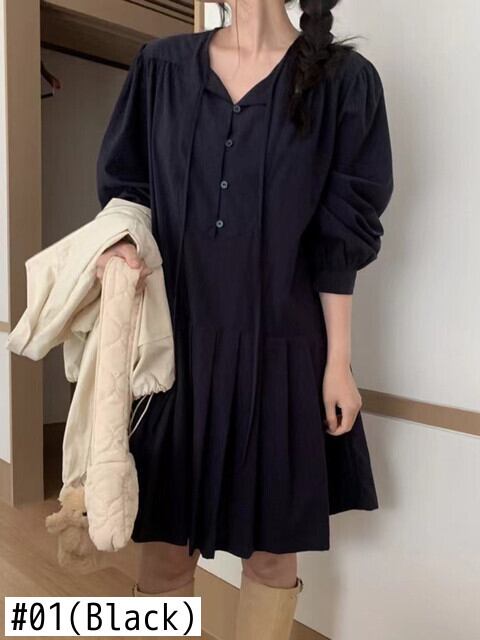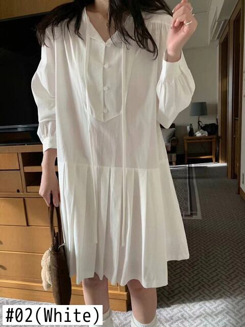 [EWQ] シングルブレスト レース プリーツ ゆったり ホワイト ブラック レディース ワンピース 2024 春夏 16U8926 スプリング 春物 サマー 夏物