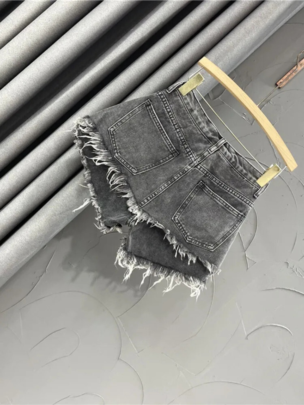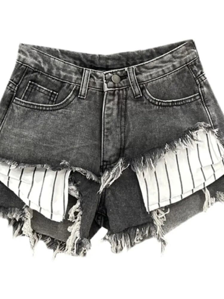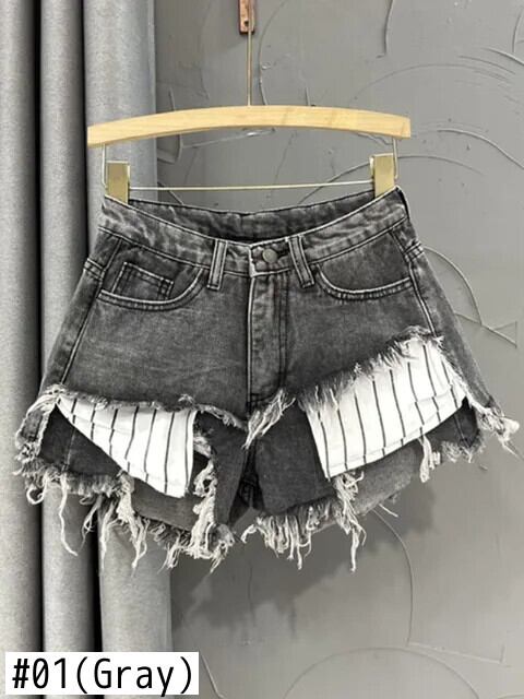 [EWQ] エイブルテル グレー パッチワーク デニムショーツ レディース ウエストボタン ショートパンツ レディース 2024春夏 16U9002 スプリング 春物 サマー 夏物 ブルマー