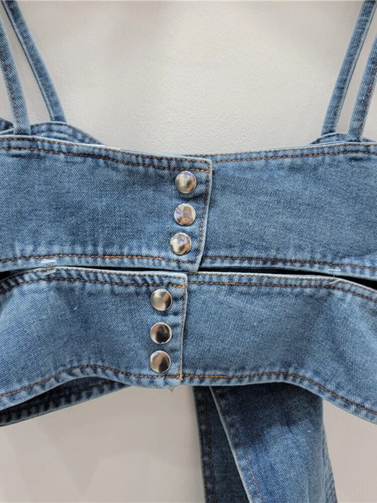 [EWQ] ストリート ビッグボウ デニムストラップ レディース バックレススリングトップ ノースリーブ ベスト キャミソール 2024春夏 16U9024 リボン スプリング 春物 サマー 夏物