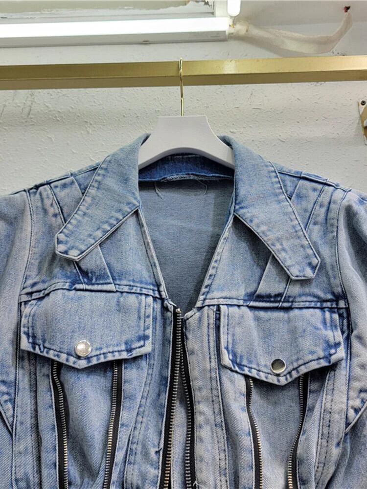 [EWQ] ストリート キャミソール ノースリーブ ブルー ウォッシュ デニム ベスト ジャケット コート トップス レディース 2024 春夏 6U8762 スプリング 春物 サマー 夏物