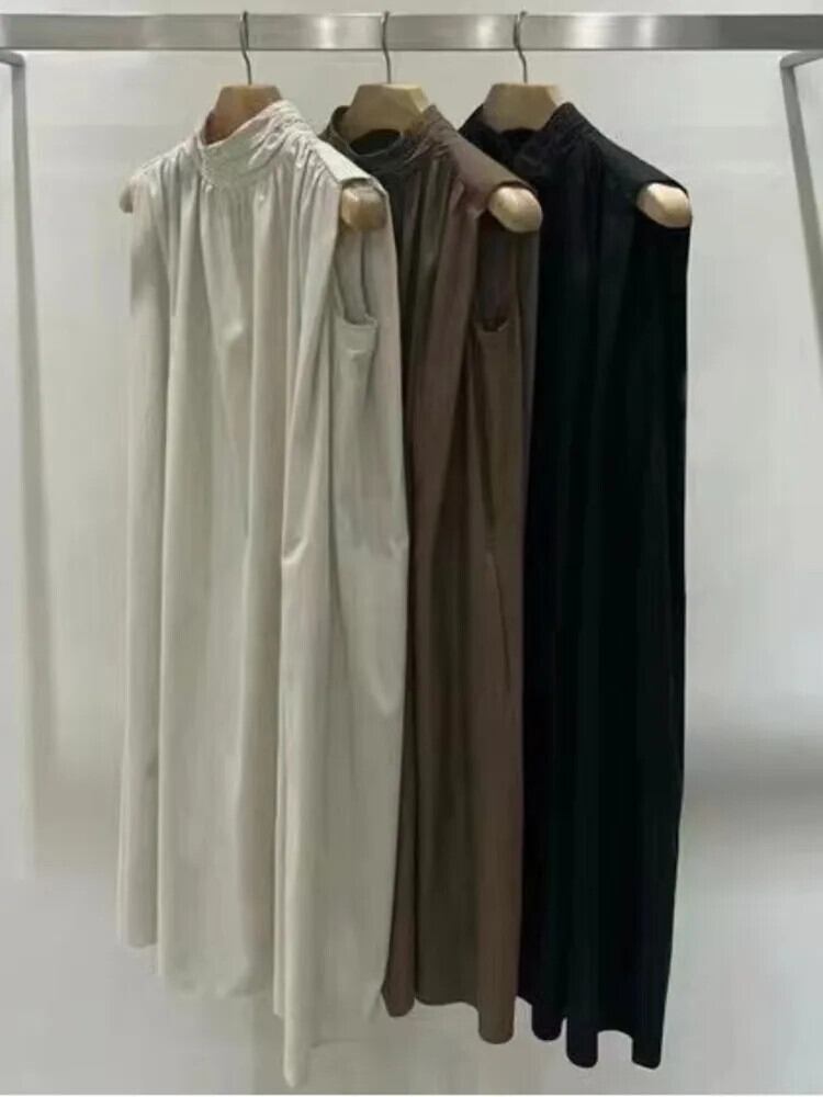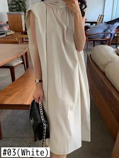 [EWQ] シックスタンドネック無地プリーツバックくり抜きタンクトップドレスレディース 2024 春夏 16U8924 スプリング 春物 サマー 夏物 ソリッドカラー