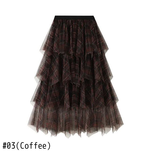 [EWQ] ストリートコントラストカラーチェック柄スカート レディース イレギュラーメッシュケーキ Aラインスカート 2024春夏 16U8647 スプリング 春物 サマー 夏物