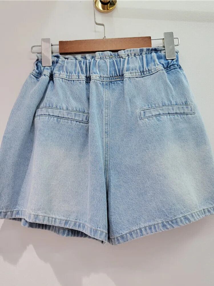 [EWQ] ブルーダイヤモンド スタッズ ビーズウエスト ワイドレッグ デニムショーツ レディース 巾着ショートパンツ 2024春夏 16U9048 スプリング 春物 サマー 夏物 ブルマー ワイドパンツ