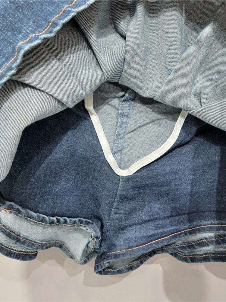 [EWQ] ヨーロッパウエストハーフスカートローウエストシングルブレスト A ラインデニムプリーツスカート 2024 春夏 16U9030 スプリング 春物 サマー 夏物 Aライン ヨーロピアン