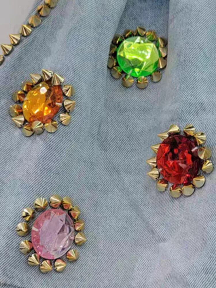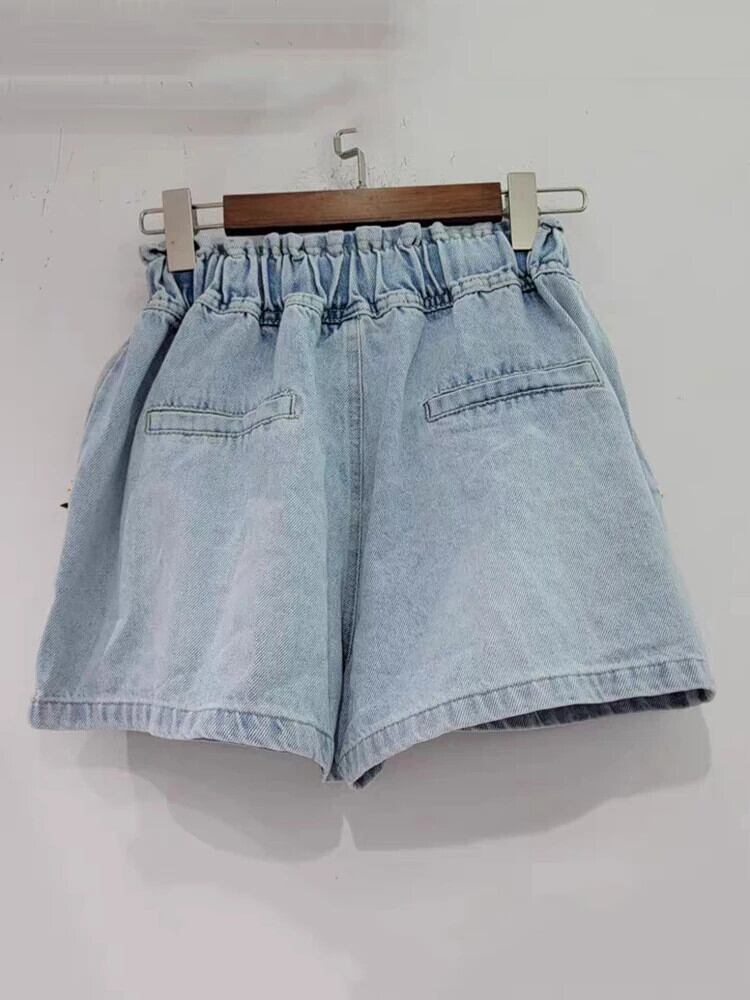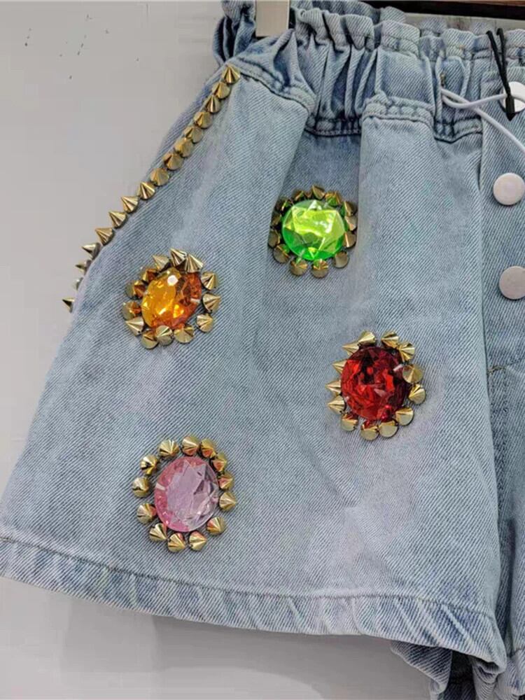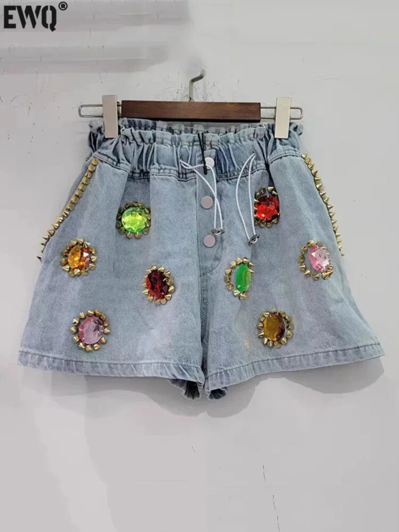 [EWQ] ヨーロッパ カラフル ダイヤモンド ネイル ビーズ レディース ショートパンツ ウエストゆったり ワイドレッグ デニム ショートパンツ 2024 春夏 16U9026 スプリング 春物 サマー 夏物 ショーツ ブルマー ワイドパンツ ヨーロピアン