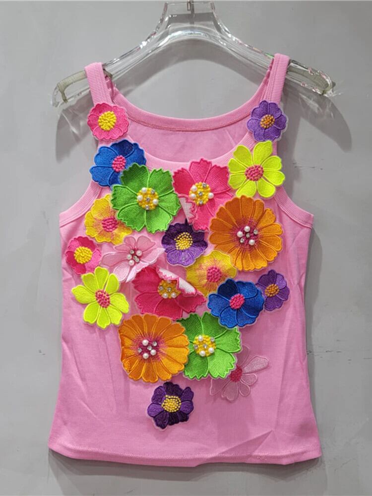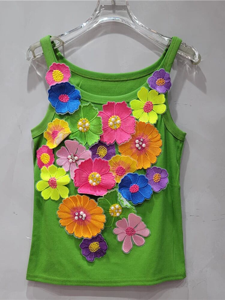 [EWQ] ヨーロッパ美しいダイヤモンド 3D フラワー タンクトップ レディース ノースリーブ キャミソール ビーズ アウター ベスト 2024 春夏 16U9034 スプリング 春物 サマー 夏物 フラワーデザイン ヨーロピアン