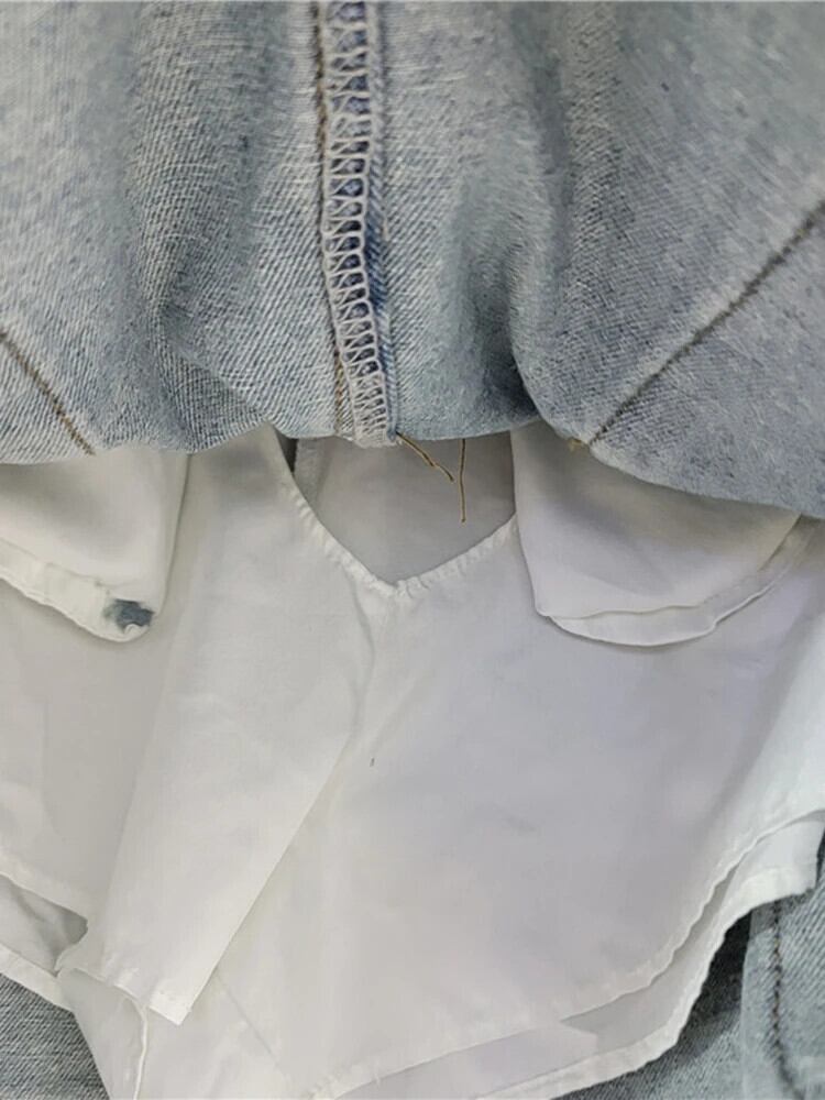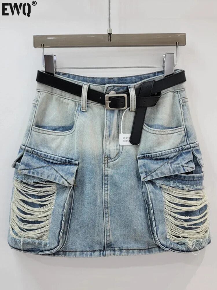 [EWQ] ウエストショートスカート グラデーションカラー ホールポケット ブラック ブルー デニムスカート レディース 2024 春夏 16U9071 スプリング 春物 サマー 夏物