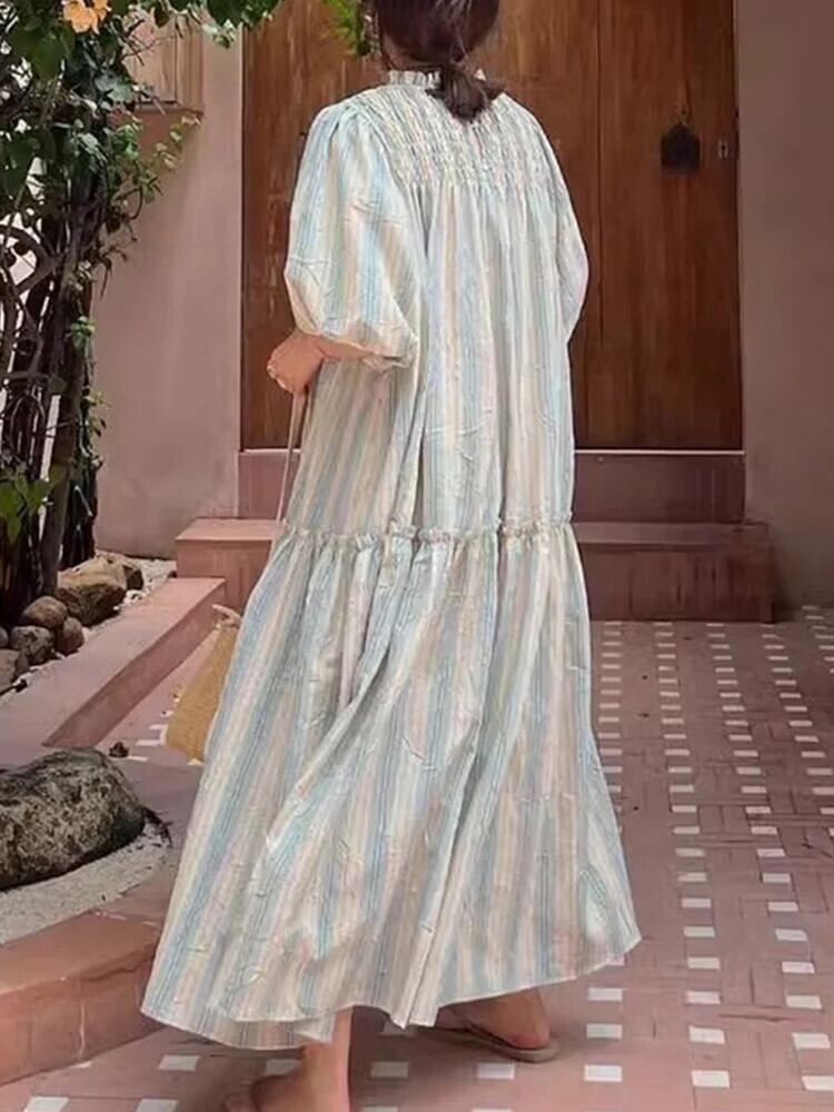 [EWQ] シック休暇スタイルハロー染めストライプルーズミッドレングスランタンスリーブドレス 2024 春夏 16U9253 スプリング 春物 サマー 夏物