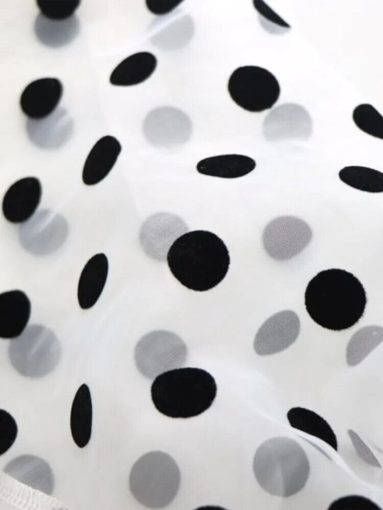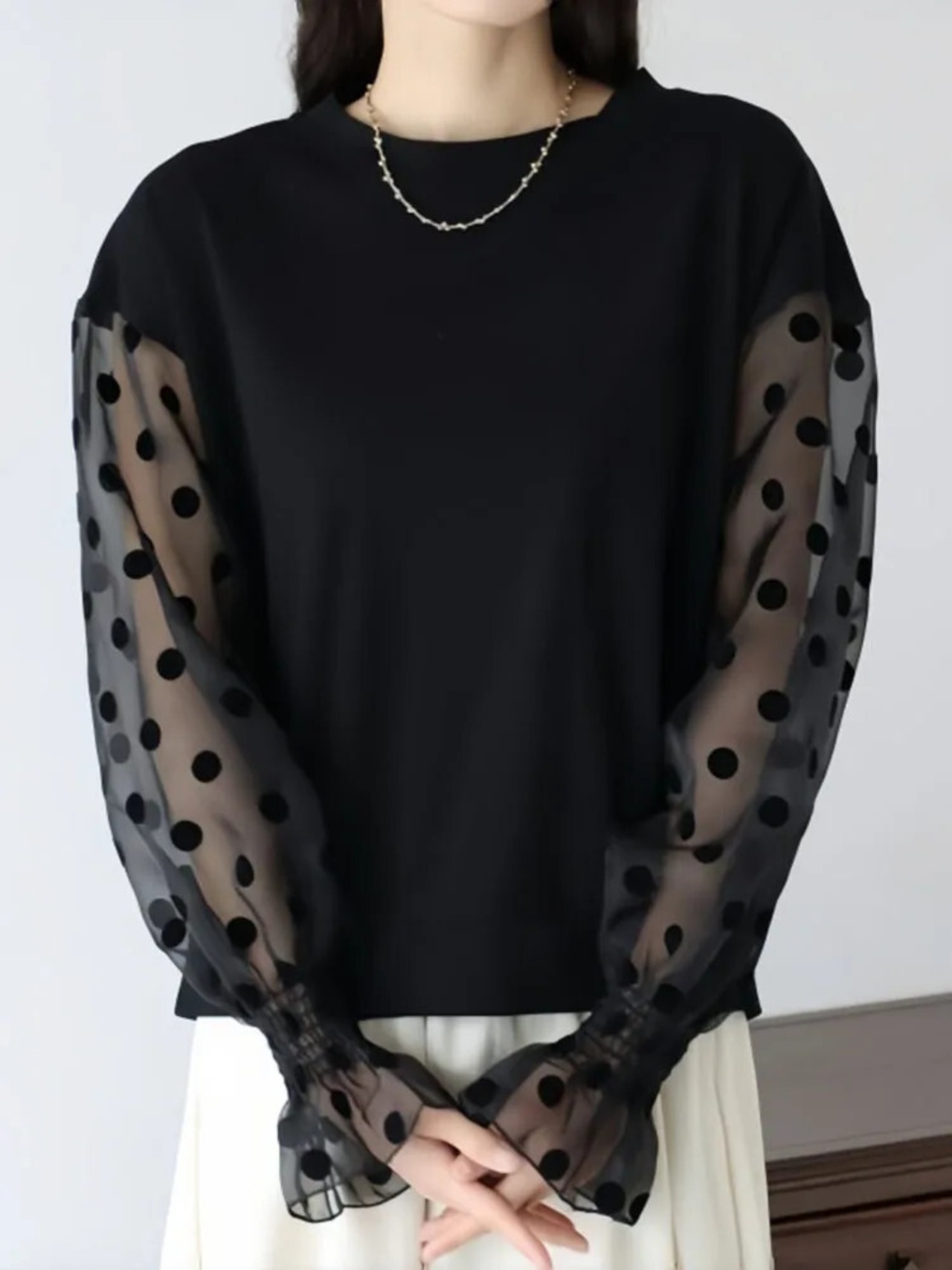 [EWQ] レディース フロッキングドット メッシュ スプライス 長袖 Tシャツ 遠近 ブラック ホワイト ルーズ O ネック トップス 2024 春夏 16U8954 ロング スプリング 春物 サマー 夏物 Oネック