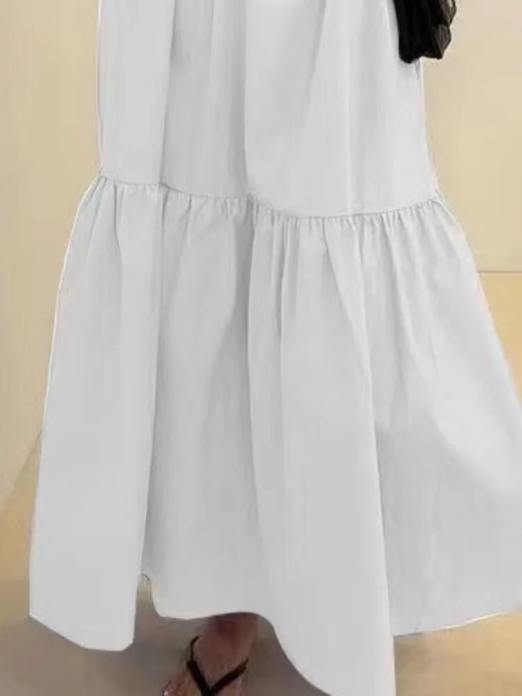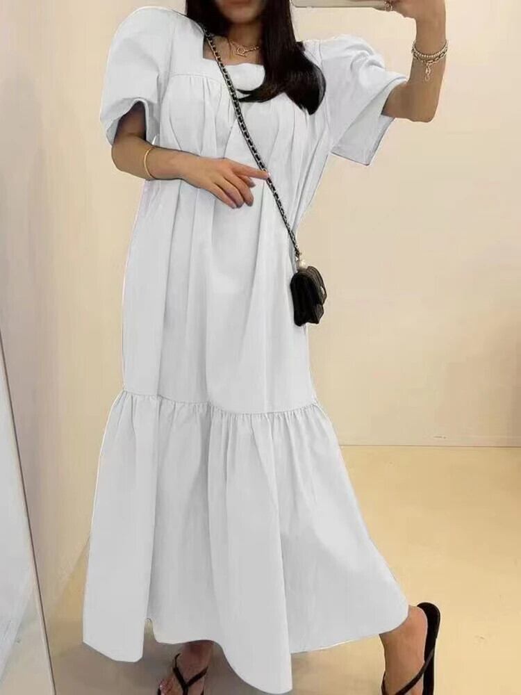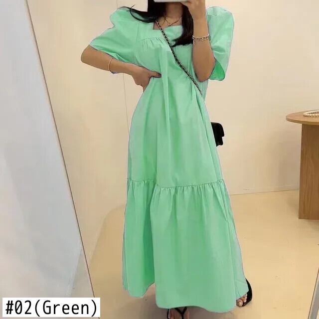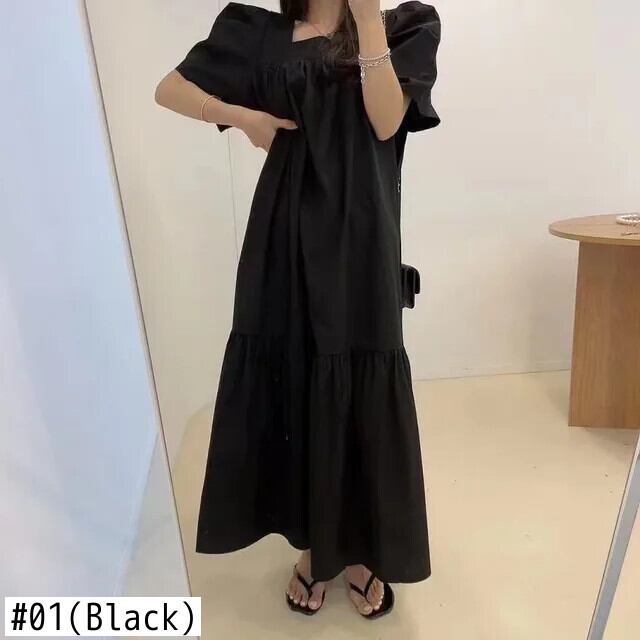 [EWQ] シックスクエアネックドレス半袖半袖ロングドレス 2024 春夏 16U8906 ショート ハーフスリーブ スプリング 春物 サマー 夏物 スクウェア