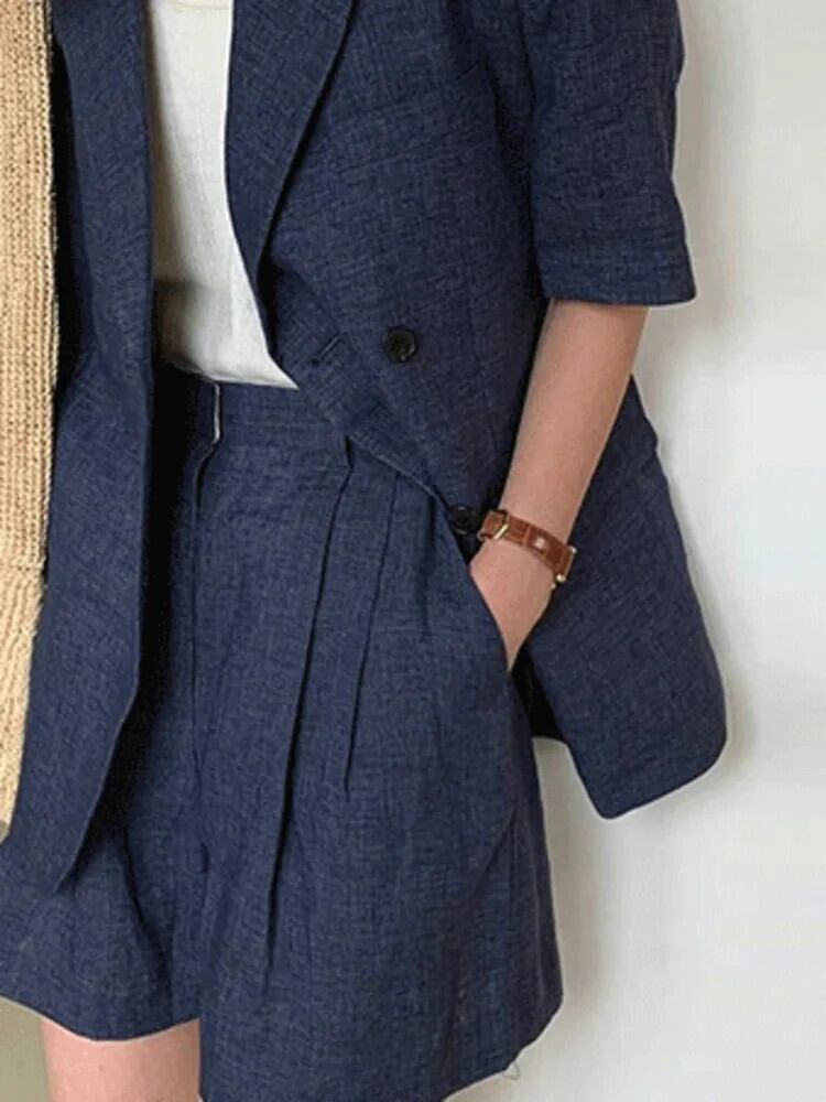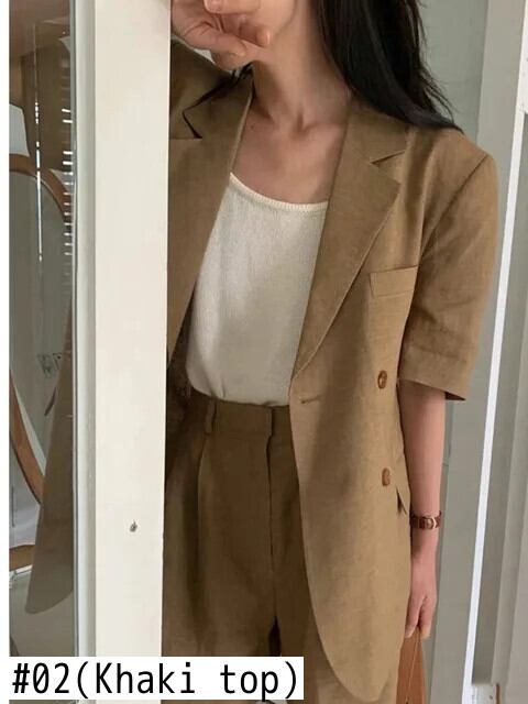 【EWQ】シックで万能半袖スーツジャケット ウエストプリーツワイドレッグショーツ 2点セット 2024春夏 U9201 ショート ハーフスリーブ スプリング 春物 サマー 夏物 ブルマー ワイドパンツ