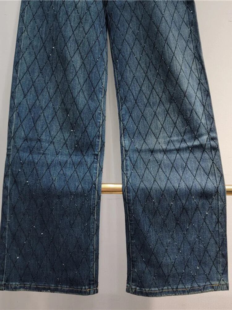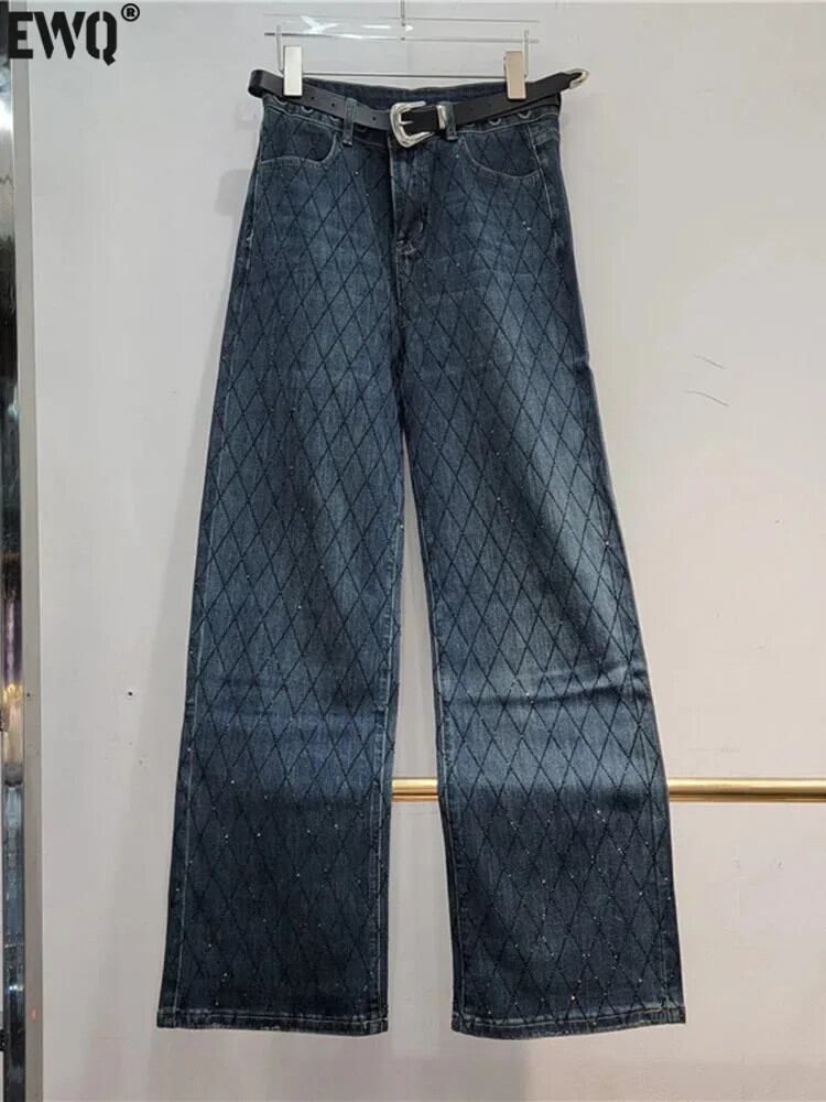 [EWQ] ヘビーウェイト ダイヤモンド ビーズ ジーンズ レディース デニム パンツ ウエストゆったり ワイドレッグ パンツ 秋冬 16U6604 オータム 秋物 ウィンター 冬物 ワイドパンツ