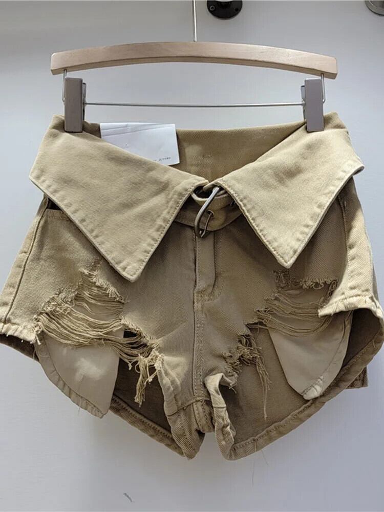 [EWQ] ストリート ブルー ブラック ショート パンツ ジーンズ ウエスト ワイドレッグ ショート パンツ レディース 2024 春夏 16U9613 スプリング 春物 サマー 夏物 ショーツ ブルマー ワイドパンツ